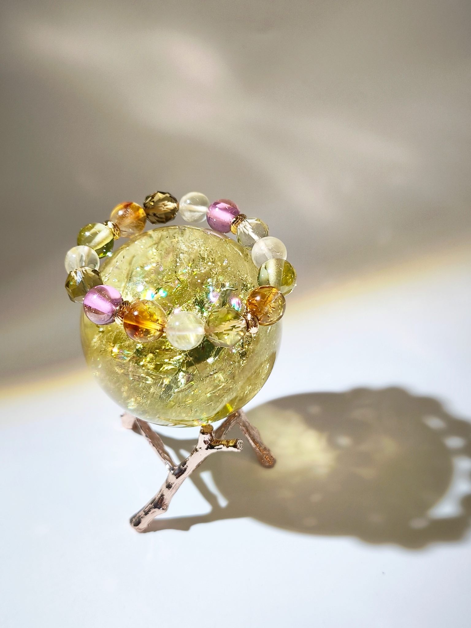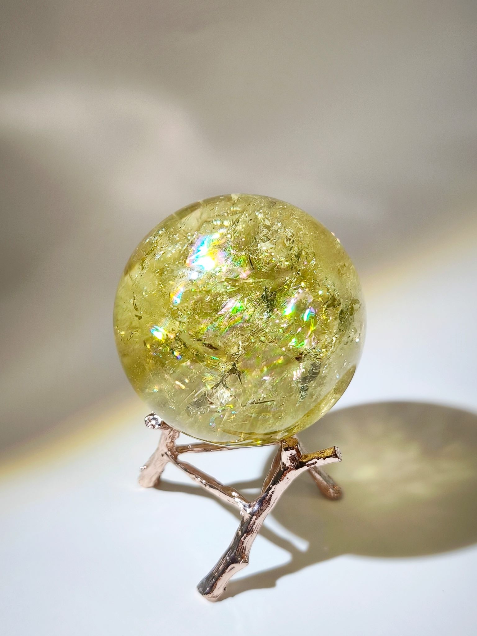 「在精緻生活之上,我們更在乎「能量的質感」。這顆天然黃水晶彩虹球,兼具明亮虹光與沉穩氣場:放在家中或辦公桌,它不只好看——更像一個穩定器,讓你忙而不亂、做事有勢頭。」