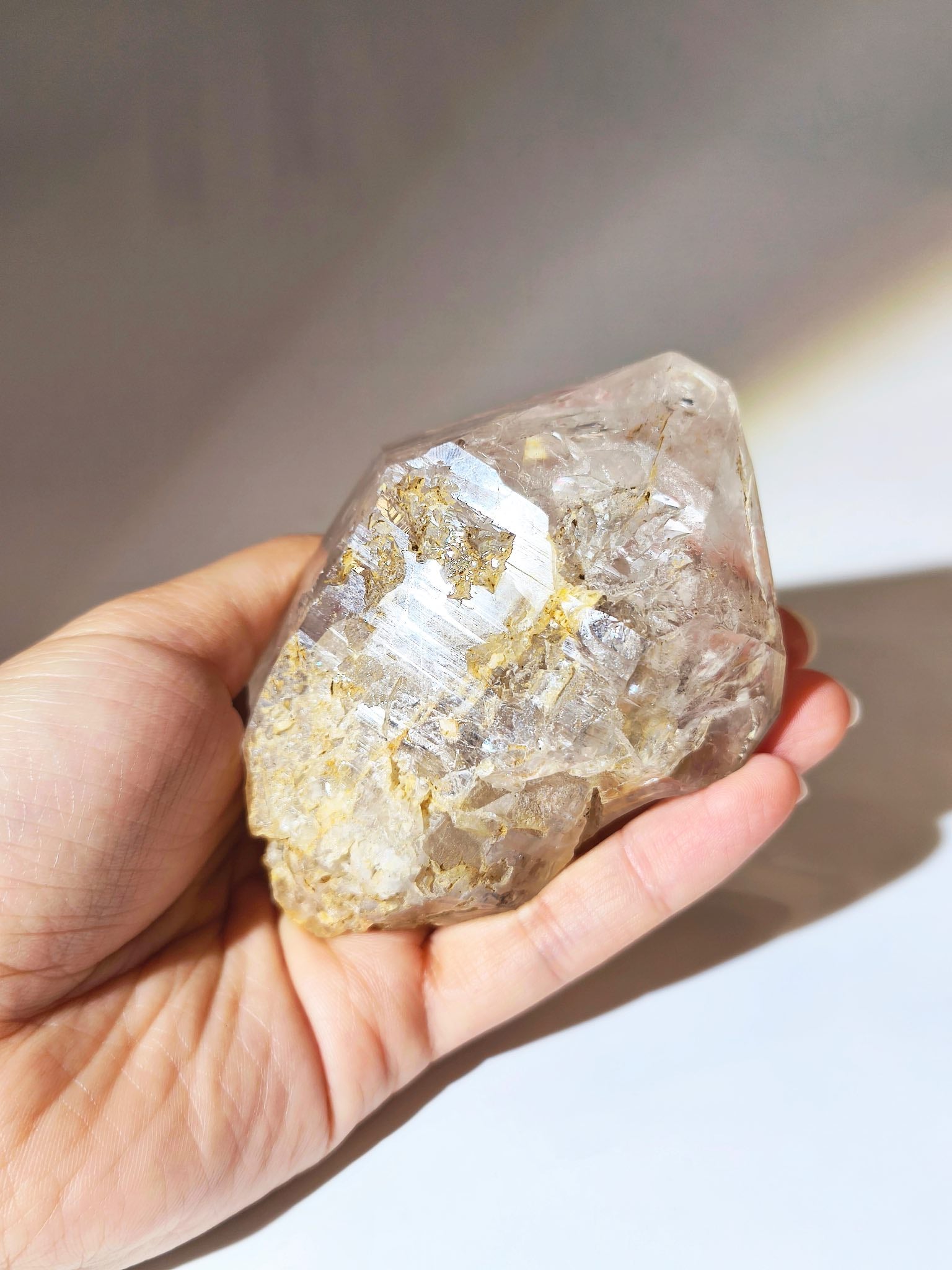 【大款】閃靈鑽/金黃閃靈鑽 ( 最長大水庫!全金黃色!)Golden Herkimer Diamond Water Inclusions