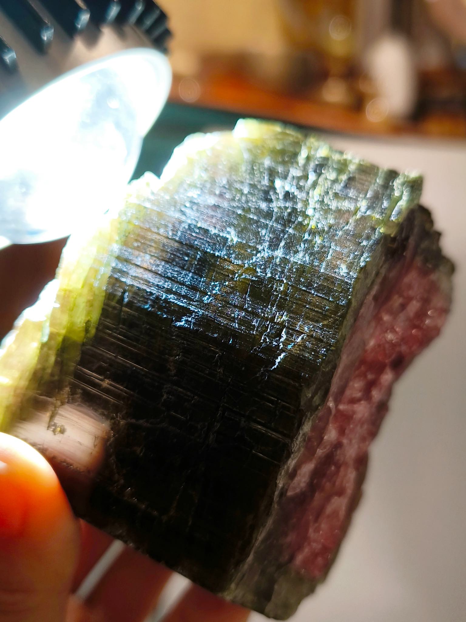 - 能量結構:這種獨特的色彩分層,代表其同時蘊含了綠色碧璽(對應心輪) 與紅色碧璽(對應海底輪) 的雙重能量,成為連接「扎根」與「博愛」的天然橋樑